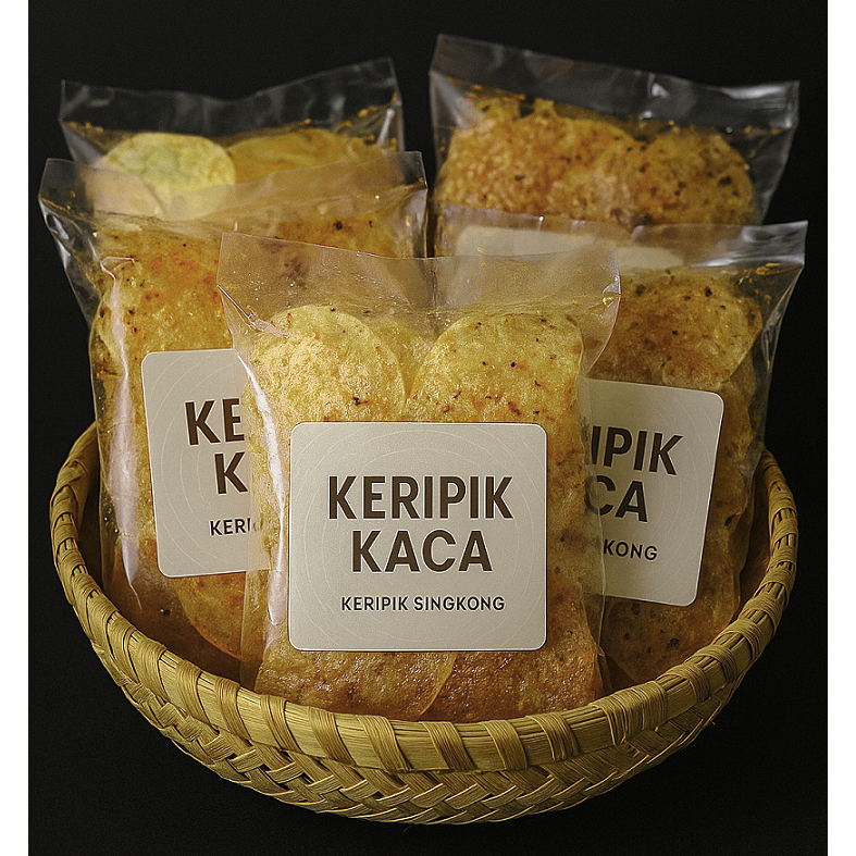 Cemilan Khas dari Ciamis yang terbuat dari Singkong/Cassava yang ditumbuk dan dibuat setipis mungkin sehingga menghasilkan tekstur yang Gurih dan Renyah, saking tipisnya jadi sebening sebuah Kaca.