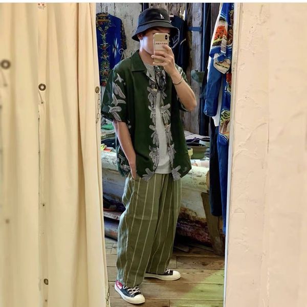 20ss kapital hirata short sleeve hawaiian shirt with relaxed feather pattern, White;black