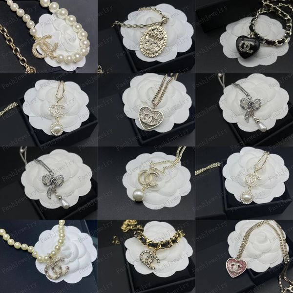 20style luxury designer double letter pendant necklaces 18k gold plated crysatl pearl rhinestone sweater necklace for women wedding party je, Silver
