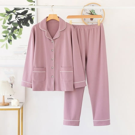 FITORON Womens Pajama Sets- Men Cardigan Casual Double Pocket Solid Long Sleeves Sleepwear Tops and Pants Turndown Suit Purple M