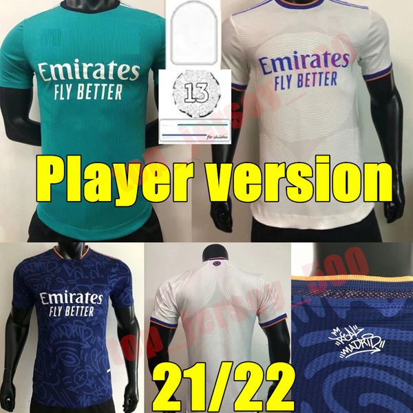 21 22 player version real madrid soccer jerseys 2021 2022 home away 3rd hazard modric sergio ramos maillots de football shirt benzema marcel, Black;yellow