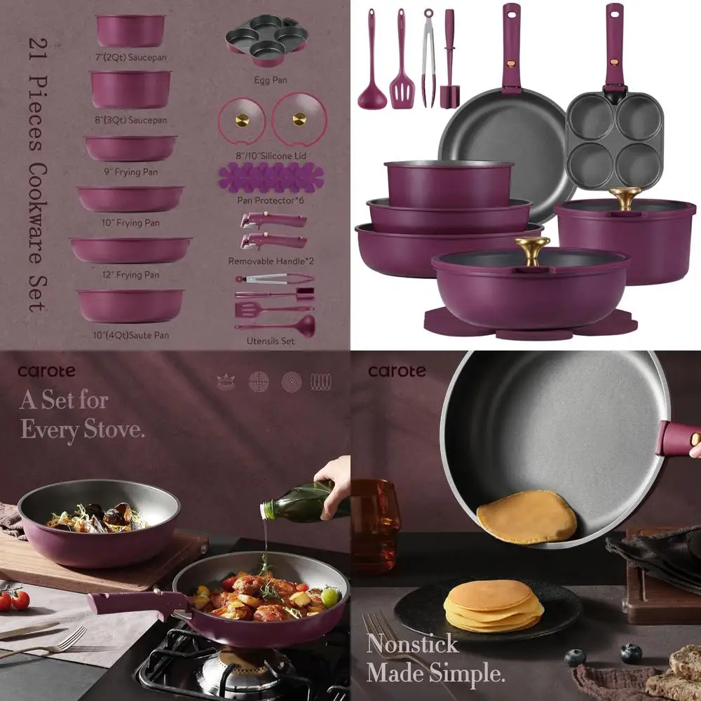 21-Piece Nonstick Detachable Handle Cookware Set, Induction Compatible, Gold & Purple RV Kitchenware