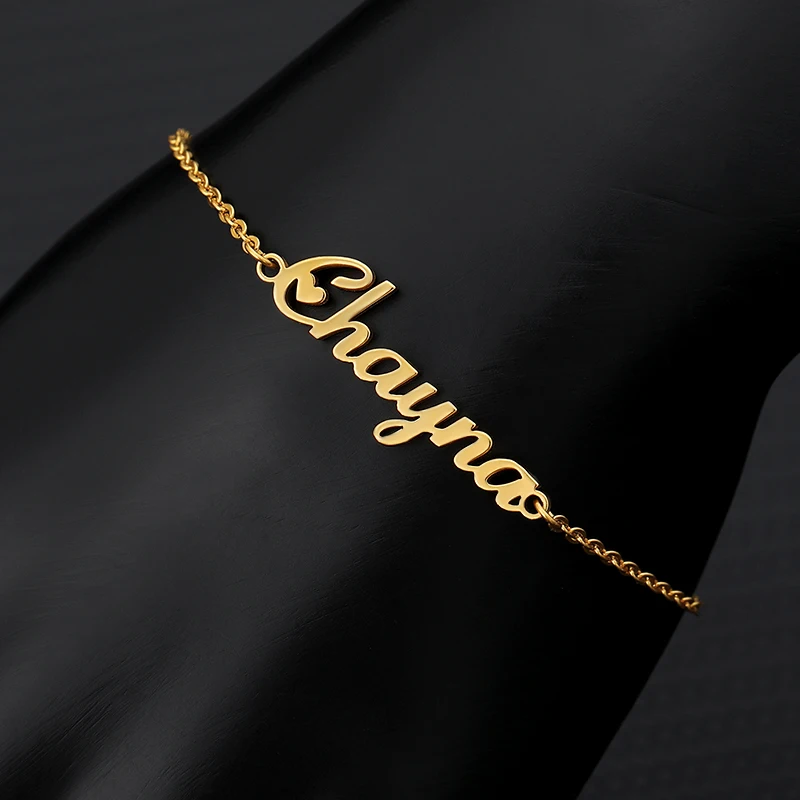 Женские золотистые браслеты с именем на заказ, персонализированные браслеты из нержавеющей стали с выгравированной табличкой, женские рож...