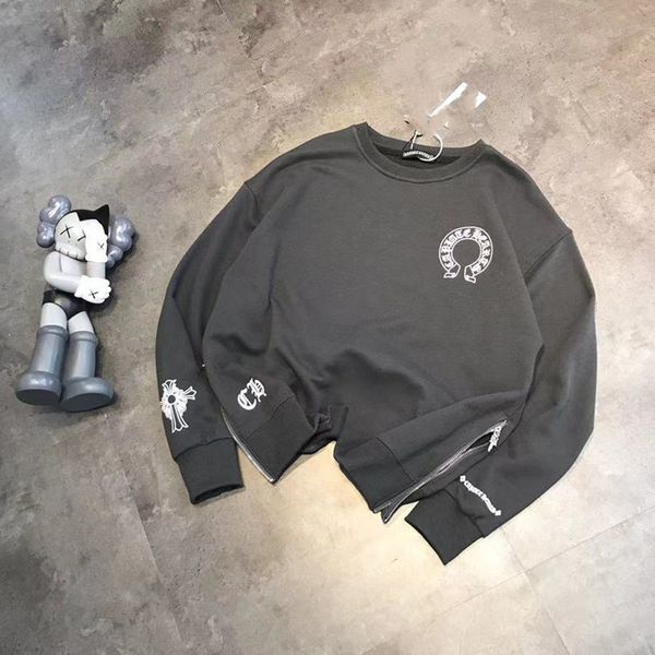 21ss autumn new fashion ch crowe's left and right zipper sanskrit iron gray terry round neck sweater, Black