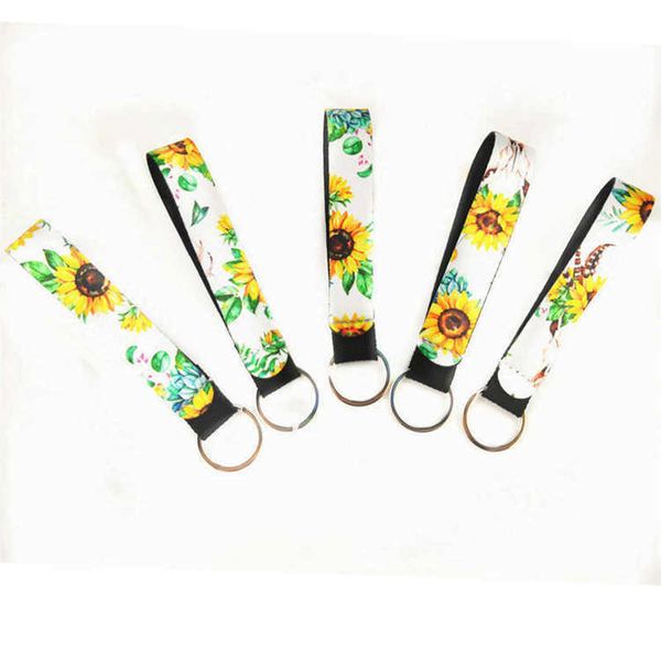 22 дизайна wristband keychains цветочной printed цепь неопрен брелок wristlet брелок партия благосклонность dhf116
