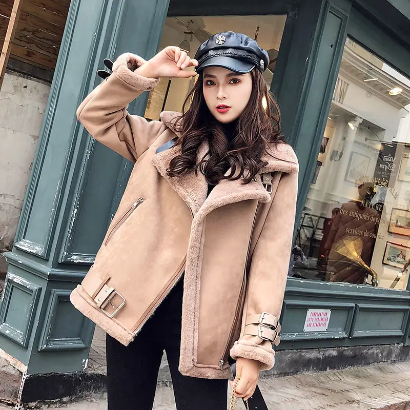 Retro Fashion Lamb Wool Fur Coats Women Winter Thick Cashmere Warm Spliced Short Fur Jackets Female Casual Loose Moto Outerwear