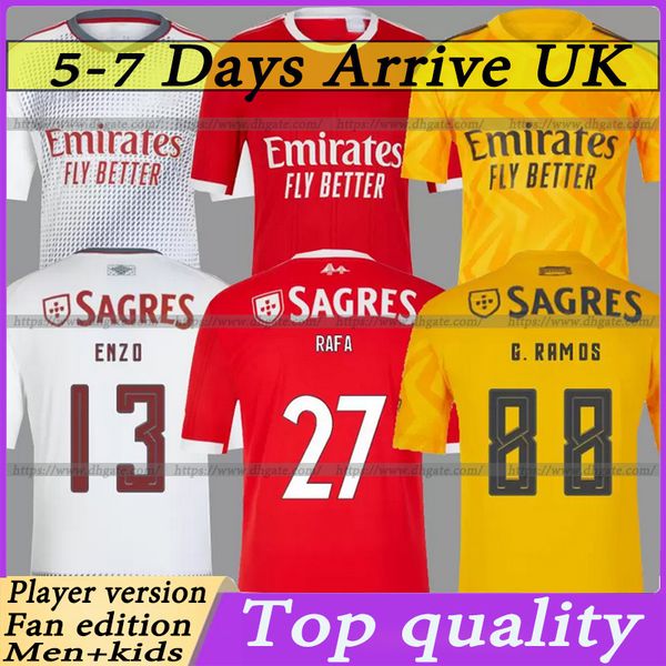 22 23 fans player version benfica soccer jersey seferovic waldschmidt everton pizzi rafa darwin g.ramos 2021 2022 home away men kids kit foo, Black;yellow