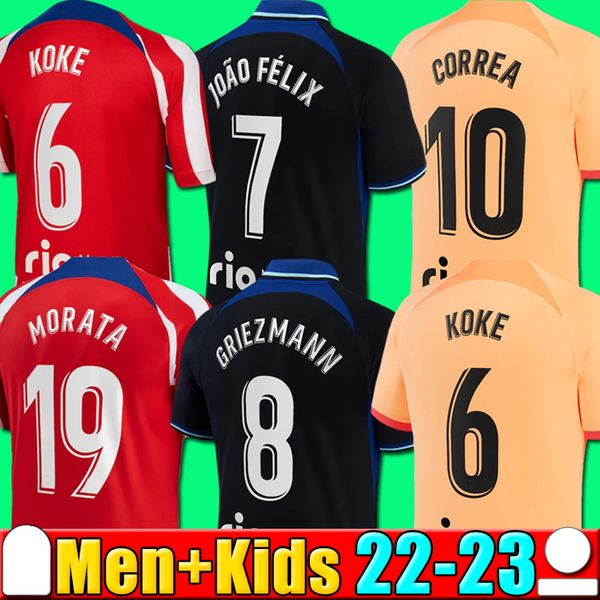 22 23 soccer jerseys anos joao felix suarez 2022 2023 carrasco correa koke camiseta de futbol herrera llorente renan men footall kids kit, Black;yellow