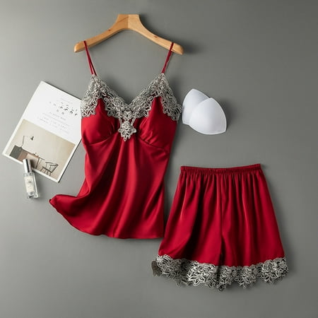 Tfalo Lingerie For Women Pajamas For Women Women Sexy Sling Shorts Lace Trim Two Piece Home Service Homewear Pajamas Set