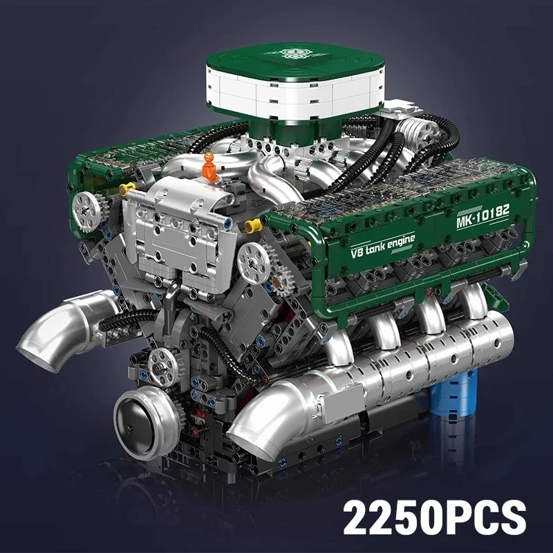 2250PCS V8 Tank Engine Model Assembly Building Blocks Toys Sets Motorized Simulation Bricks Sets Kids Adult Educational Toys