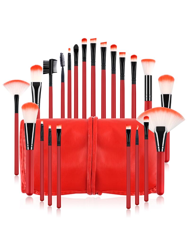 22PCS Handle Makeup Brush Set, Red