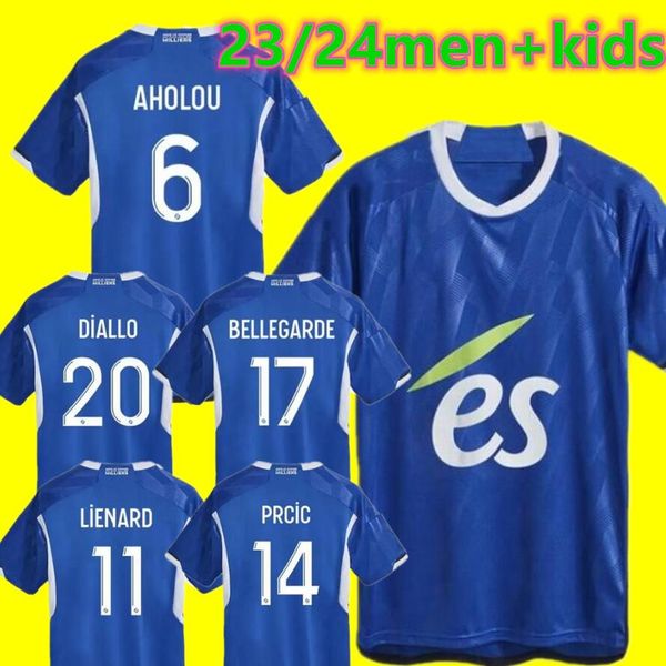 23 24 rc strasbourg alsace soccer jerseys maillot de foot home blue 2023 2024 aholou thomasson lienard diallo djiku ajorque gameiro football, Black;yellow