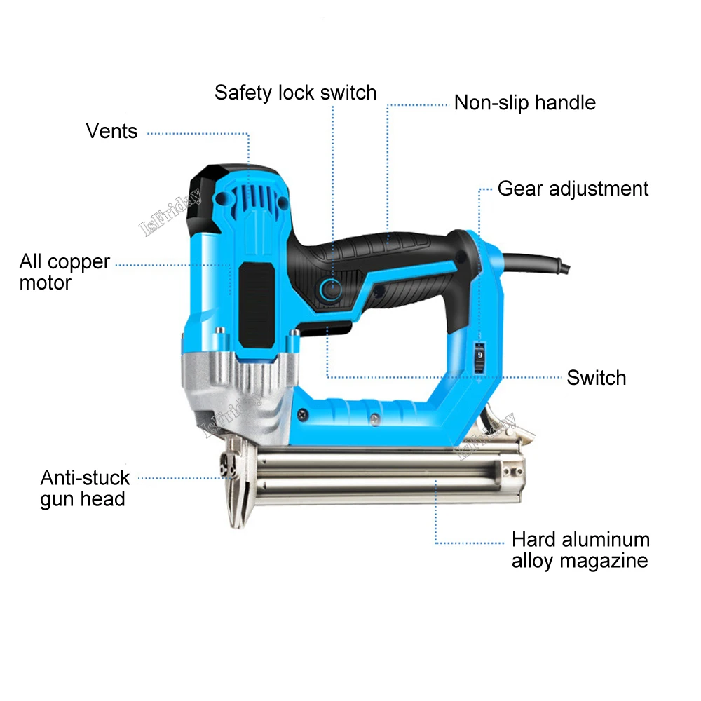 2300 Вт Электрический пистолет для ногтей 220 В инструменты для деревообработки электрический прямой степлер для ногтей F30/F25/F20/F15 степлер для мебели шутер