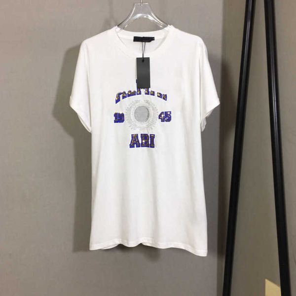 23ss designer brand women t-shirt sequin letters embroidery round neck pure cotton short sleeve leisure womens clothing a1, White