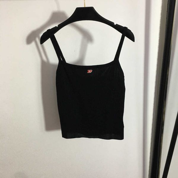 23ss knitted camisole vests womens tanks camis womens designer clothing chest embroidery logo one-line collar spread chest knitted suspender, White