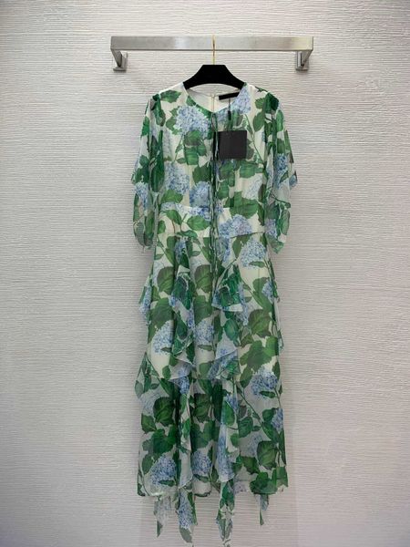 23ss summer dresses women dress womens designer clothing fresh leaf print lace up front waist drawn to show thin ruffle edge panel irregular, Black;gray