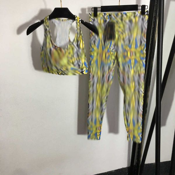 23ss yoga suit women designer clothes summer new yoga figure flower print tank with breathable chest pads elastic tight leggings women cloth, Gray