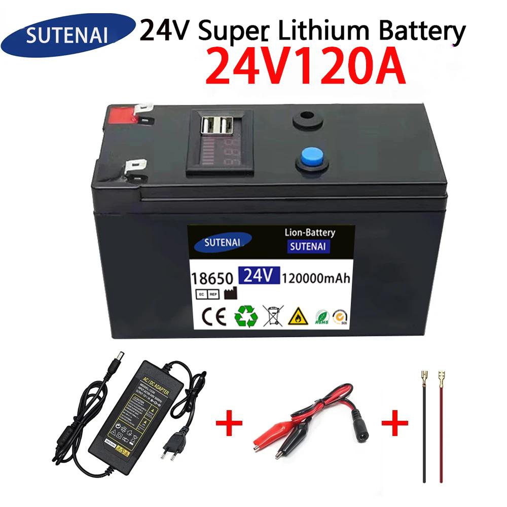24 В батарея 120 Ач 18650 литиевая аккумуляторная батарея для солнечной энергии аккумулятор электромобиля + зарядное устройство 25,2 В 2 А