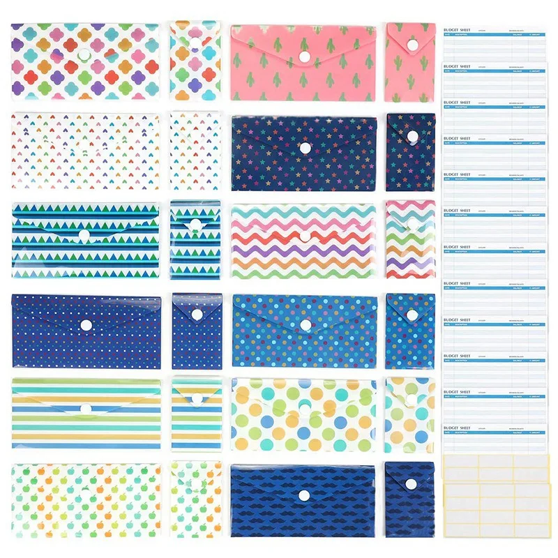 24 деньги конверты наличных денег конверты бюджет кошелек конверт Системы Водонепроницаемый многоразовые для экономии денег с металлическ...