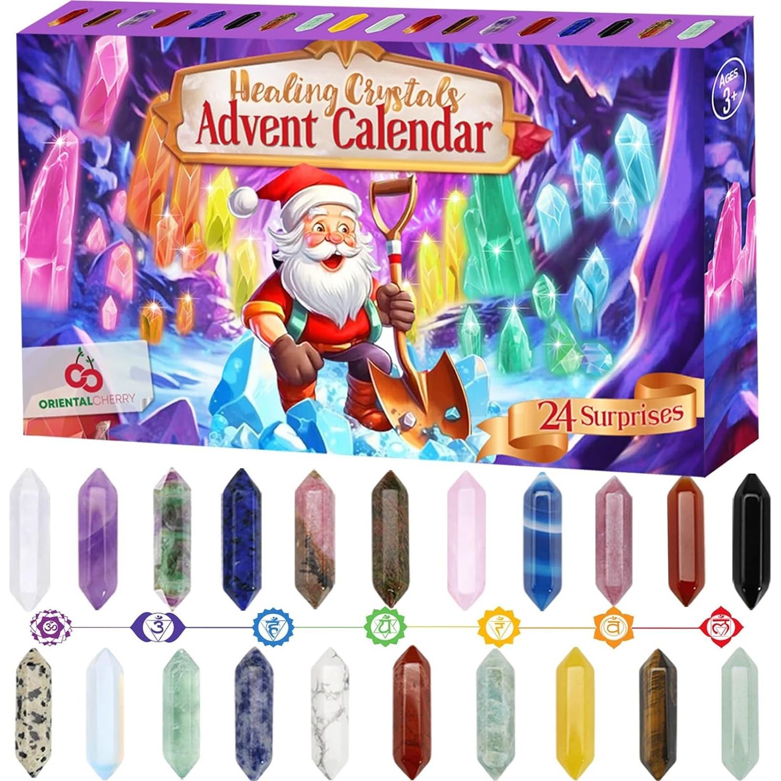 24 дня Кристаллы Рождественский Адвент Календарь Подарочная коробка Натуральные драгоценные камни Камни Минералы Коллекция камней Рождественский обратный отсчет Подарок One Size