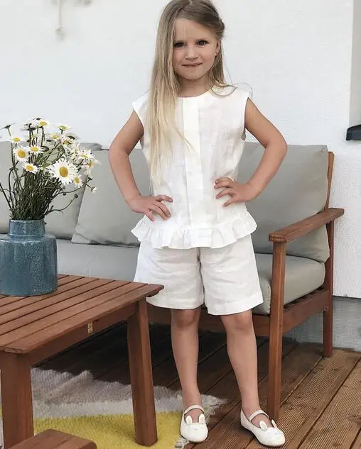 24 летние детские футболки и шорты для девочек, льняные комплекты одежды