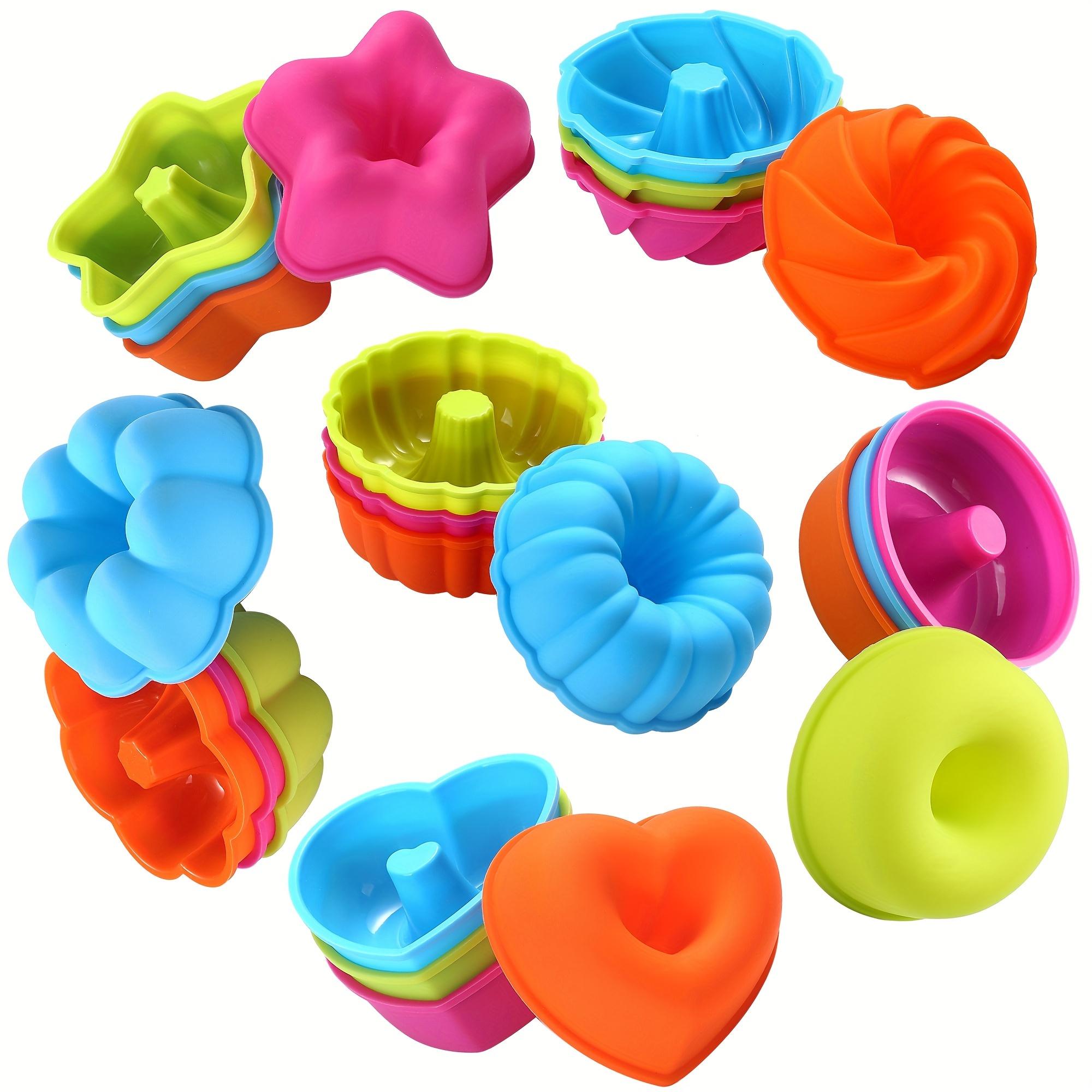 24 упаковки силиконовых форм, 6 форм силиконовых вкладышей для кексов, многоразовые силиконовые чашки для выпечки, идеально подходят для желейного пудинга, торта, свечного мыла 24-piece set of 6 shapes cake molds