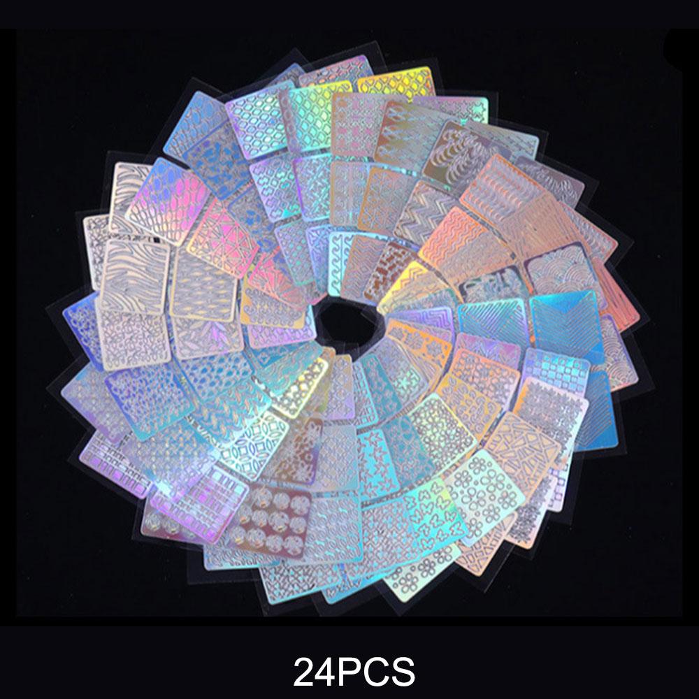 24 шт. полая лазерная наклейка для ногтей, гель-лак для ногтей, трансферная фольга, сердце, звезда, 3D шаблон для ногтей, штамп 24 pieces