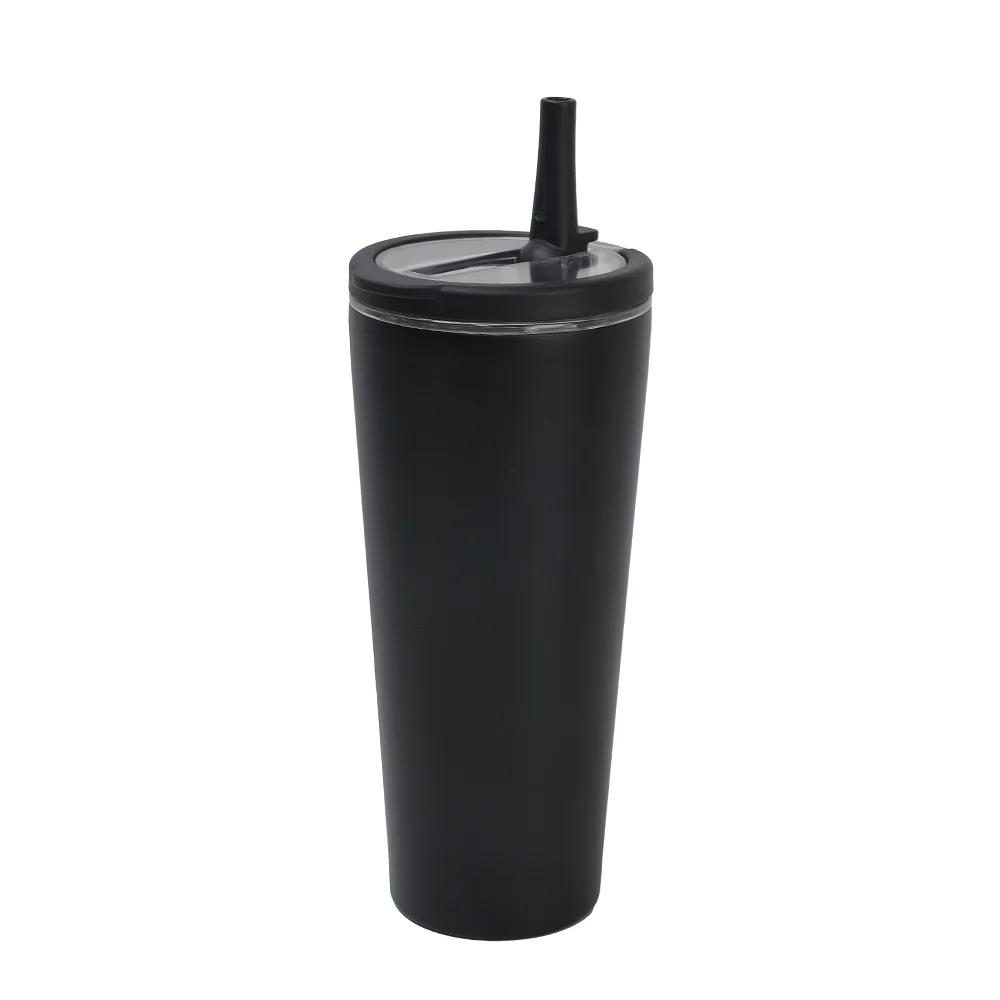 24/30 унций Тип Круглая Ручка 304 Нержавеющая Сталь Изолированная Термос Бутылка Офисная Складная Соломенная Чашка Высокая Красота Ручная Чашка 24oz 710ml чёрный