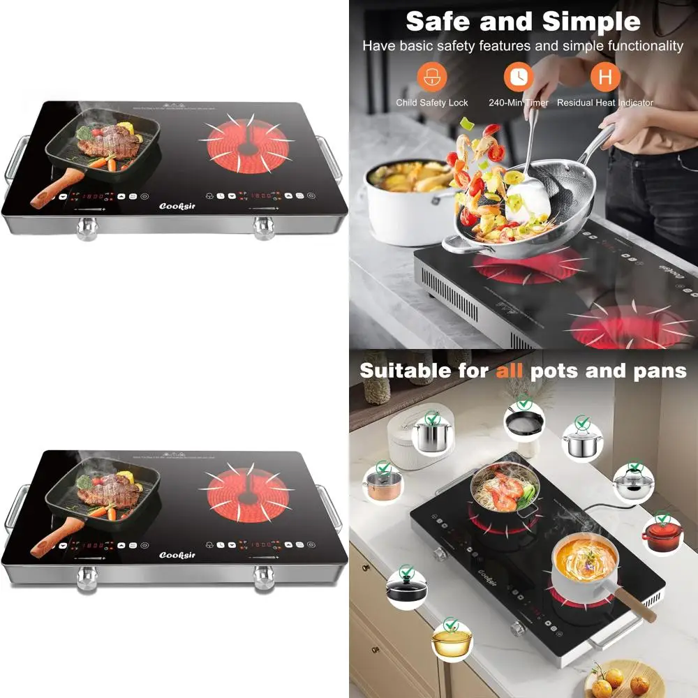 24 Inch Portable 2 Burner Electric Cooktop, 2000W, Touch & Knob Controls, Child Lock, Timer, 110V Plug In