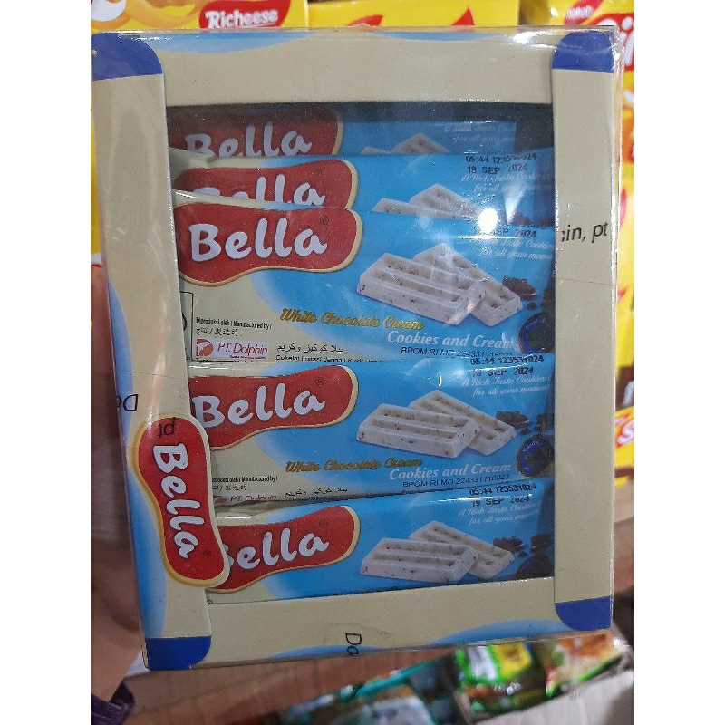 Bella, paduan coklat putih dengan cookies and cream. 1 Box isi 24PCS x 10gram.