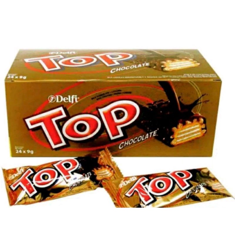 24 Pcs wafer top delfi chocolate. Manis, enak buat di makan.