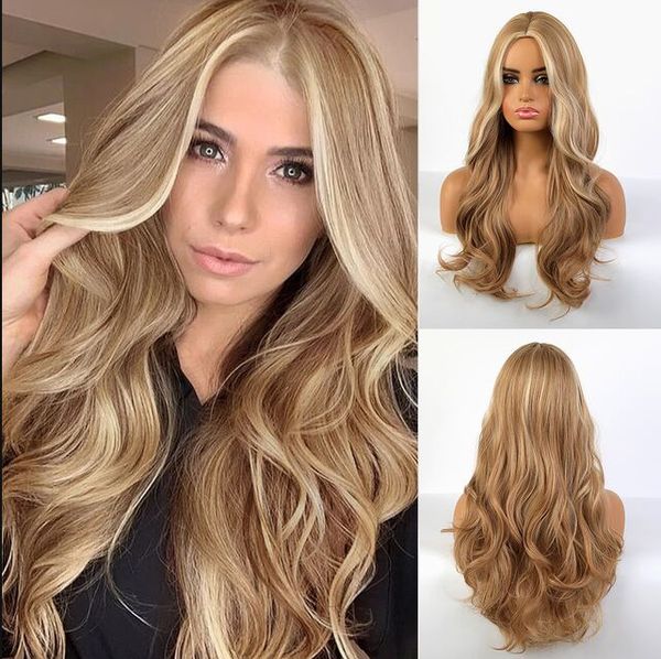 24 inch natural synthetic long wave brown wig have in stock, Black