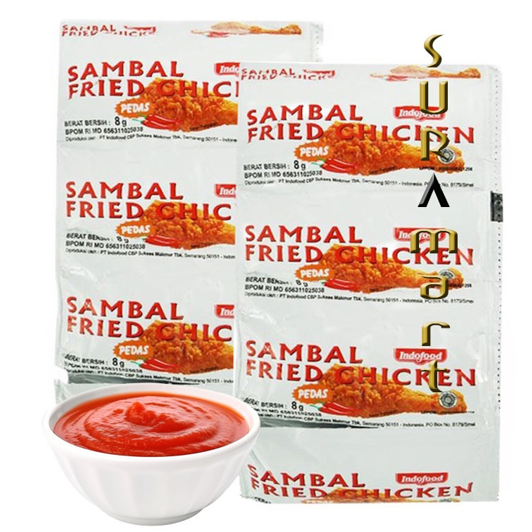 (24 pcs X 8 gr) SAMBAL FRIED CHICKEN PEDAS INDOFOOD adalah pilihan sempurna untuk membuat makanan Anda lebih lezat dan pedas.