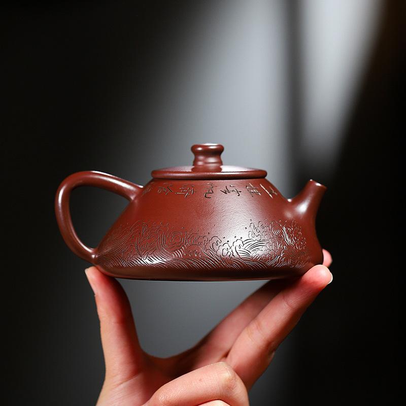 240 мл Винтажный чайник из фиолетовой глины Исин, вырезанная вручную каменная ковшовая горшок из морской волны, чайник из необработанной руды, фиолетовый чайник из глины Чжу, чайный набор «Цзыша», подарок