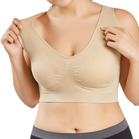 Elbourn 1Pack Women s Seamless Sports Bra Plus Size Yoga Bras Athletic Medium Impact Wirefree Bra Tops Black/Beige/White
