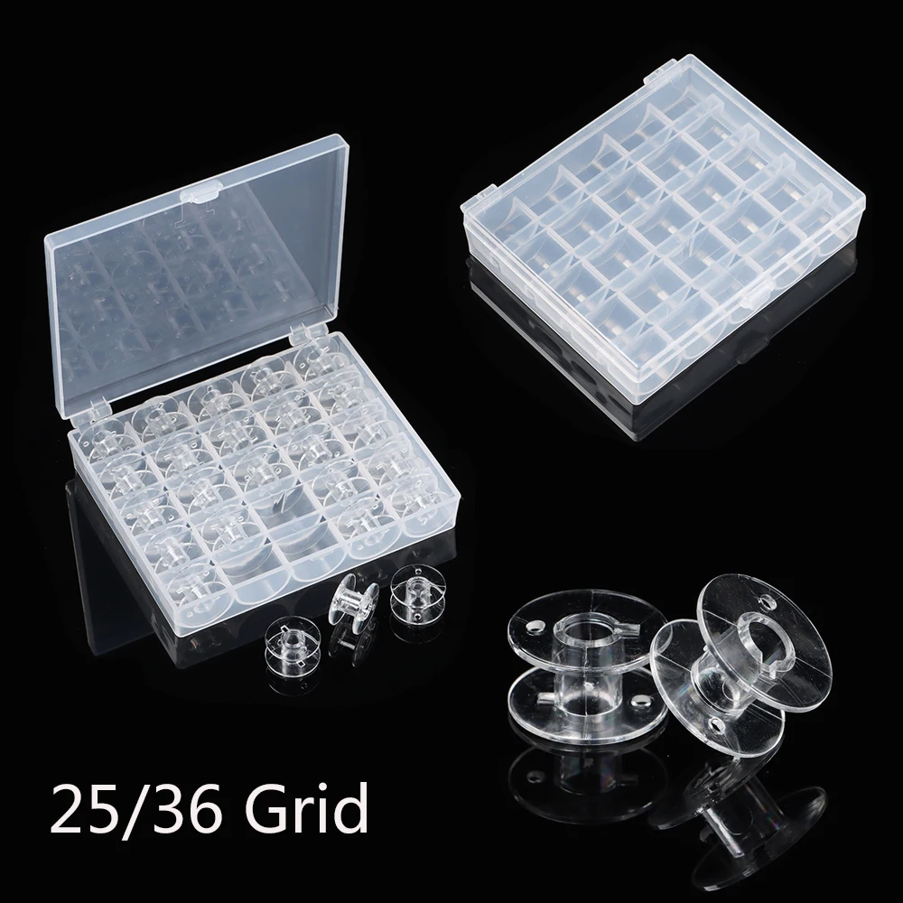 25/36 Grid Useful Case Plastic Tools Empty Bobbins Sewing Thread Set Thread Bobbin Spools Storage Box