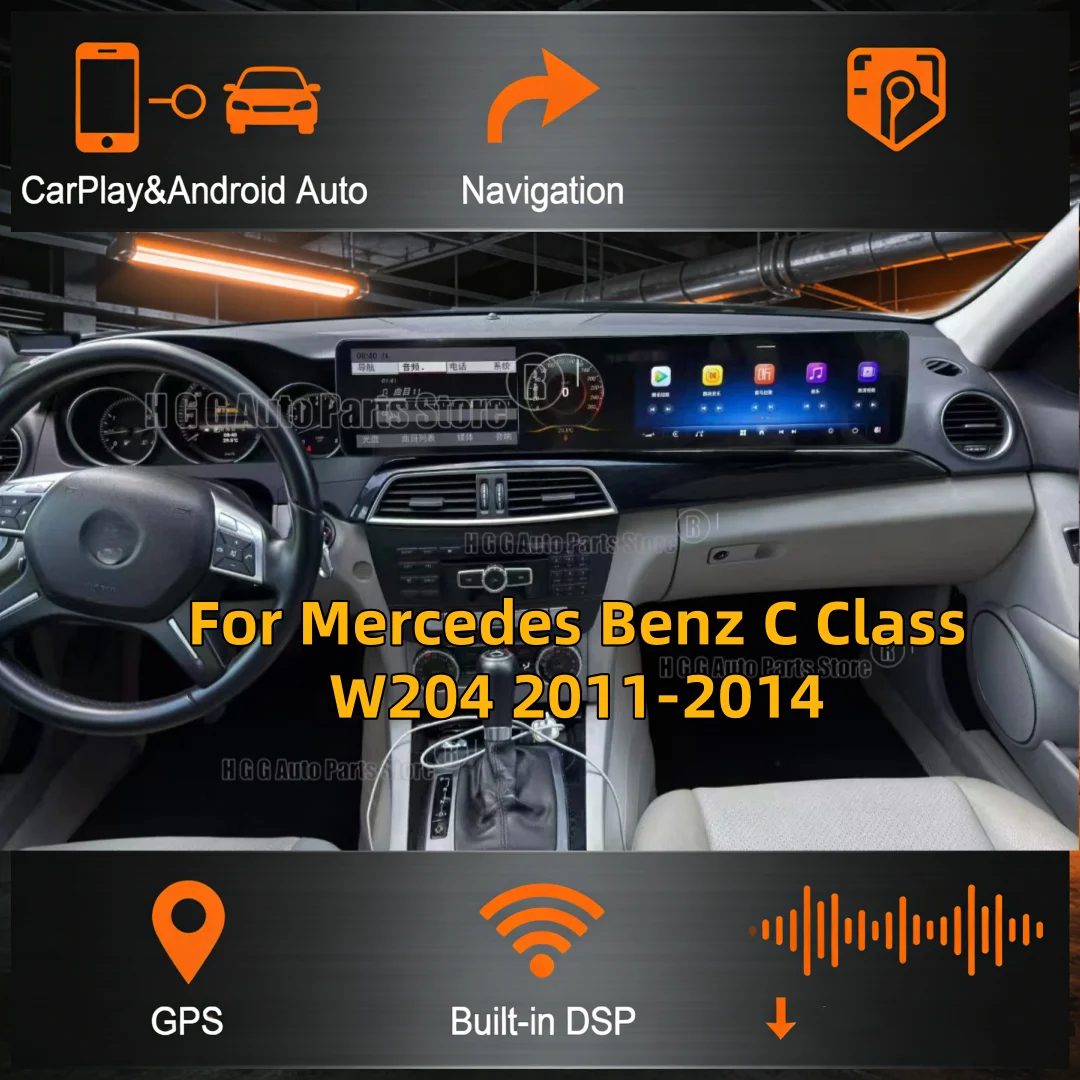 25 Inch Dual Screen Android 14 For Mercedes Benz C Class W204 2011-2014 Car GPS Navigation Multimedia Player Car Radio Media RHD