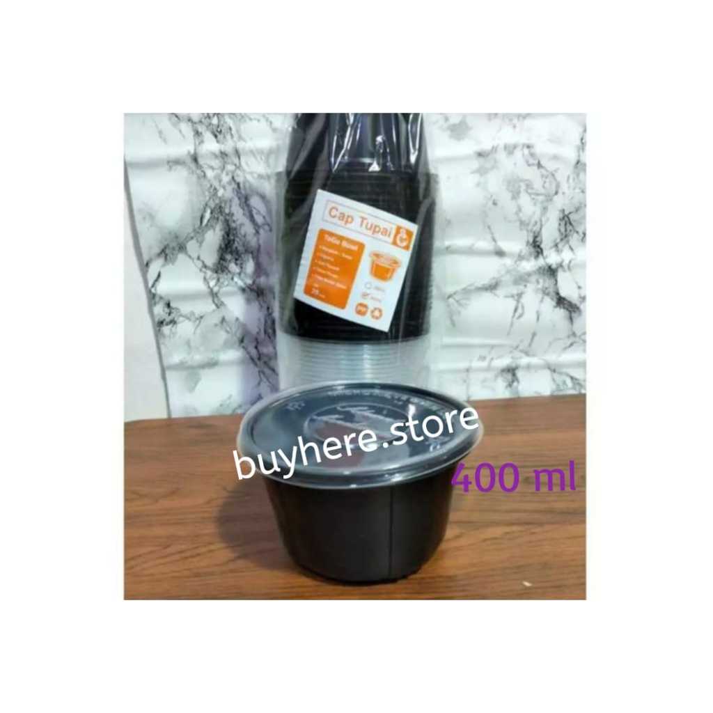 25 PCS THINWALL ROUND 200 ML/400 ML CAP TUPAI HITAM +TUTUP/KOTAK /MANGKOK PLASTIk