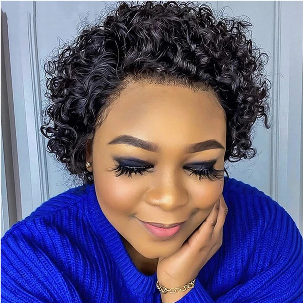 250% короткий вьющийся парик с вырезами фея, парики из человеческих волос на сетке спереди, бразильский парик без повреждений на сетке сперед...