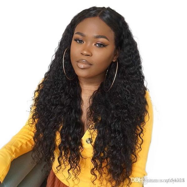 250 плотность парики фронта шнурка человеческих волос для женщин натуральный черный вьющиеся парик человеческих волос glueless бразильский п, Black