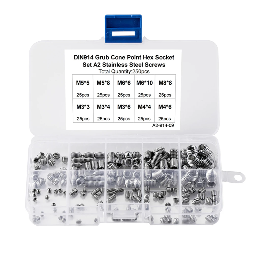 250 шт./200 шт. DIN914 304 из нержавеющей стали с шестигранной головкой и шестигранной головкой, установочный винт с конусом, конический болт M3 M4 M5 M6 M8