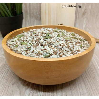 Berisi: Pumpkin seed, Sunflower seed, Flax seed dan sesame seed. Kombinasi biji-bijian ini sangat tinggi omega-3, magnesium, serat, tinggi kalsium, dan zat besi.