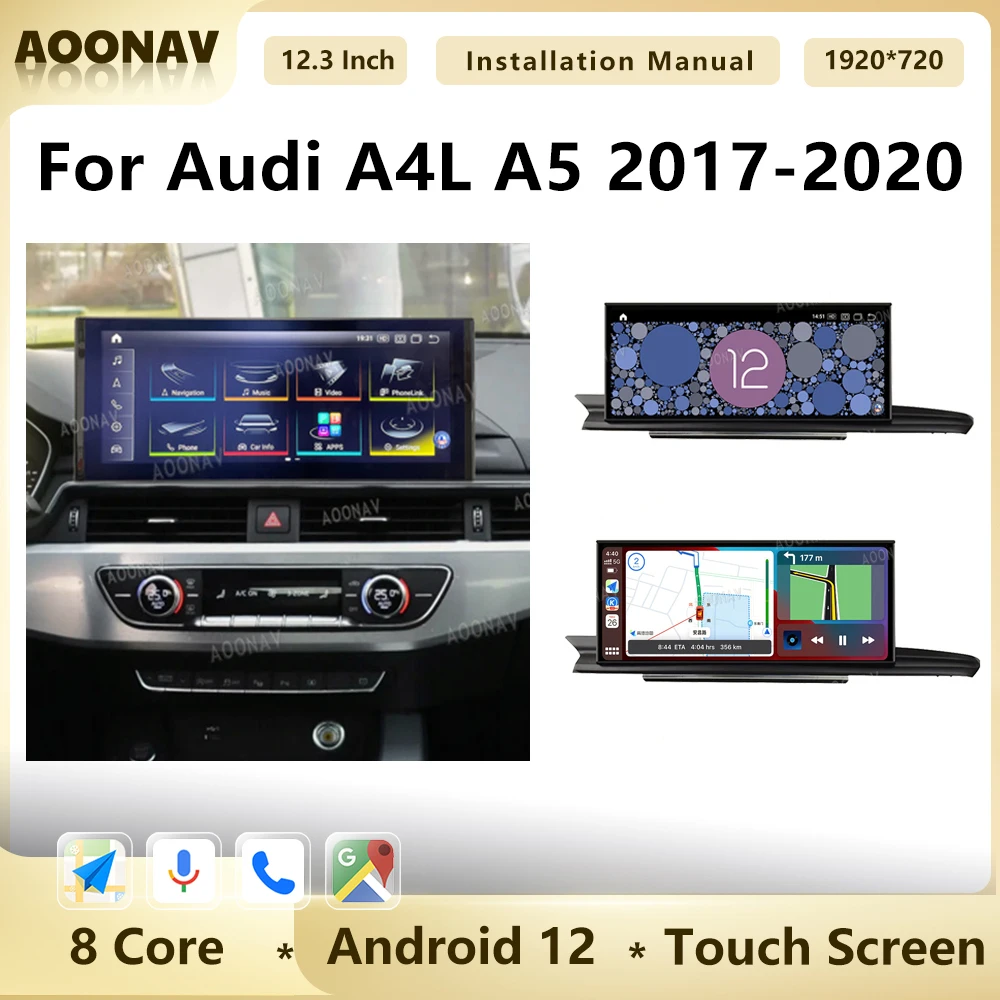 256G Android 12 автомобильный радиоприемник для Audi A4L A5 2017 2018 2019 GPS-навигация беспроводной Carplay мультимедийный плеер Qualcomm блок