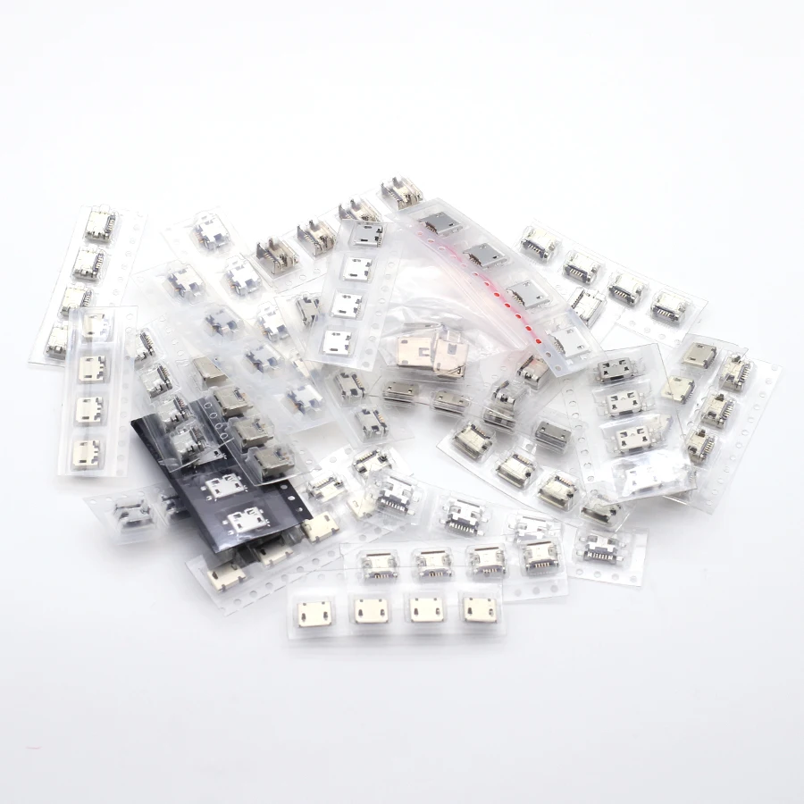 25Models 100Pcs 5 Pin Mini Micro USB Connectors SMT Socket Adapter Connector Jack charging Socket For Mobile phone Tablet Set