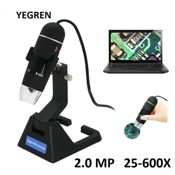25X-600X USB Digital Microscope Zoom Endoscope with 8 LED Light Illuminated Universal Stand 2.0MP USB Video Microscope Camera