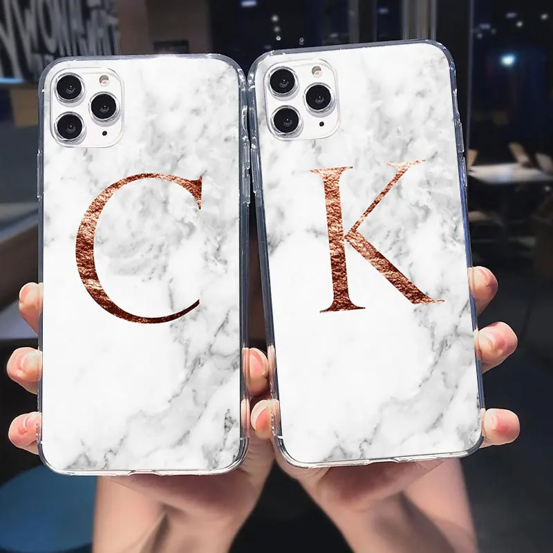 26 English Name Letters Marble Customized Initial Soft Silicone Phone Cases For iphones 11 Pro Max 6s 7 8 Plus X XR XS Max Cover