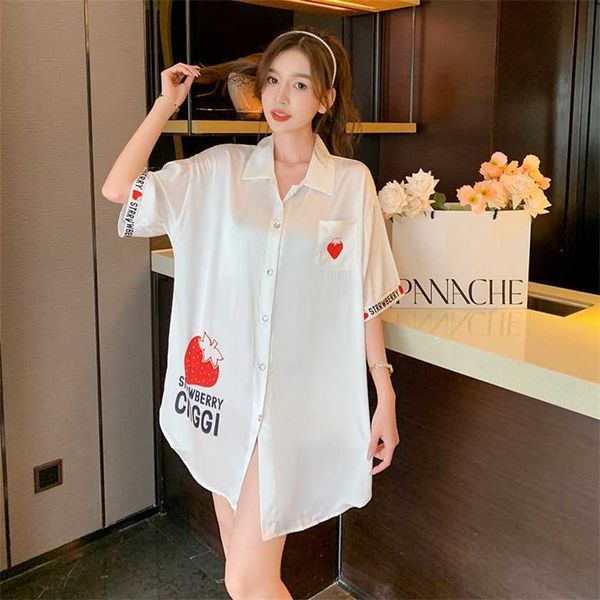 26% off ice snow silk pajamas women's spring and autumn simple love pajama skirt casual letter printing summer thin large homewear, White