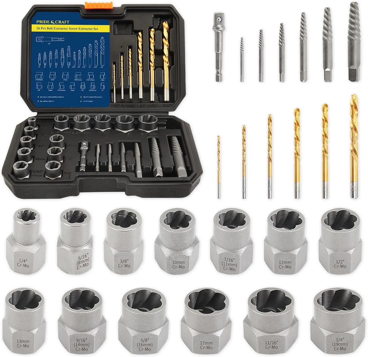 26Pcs Screw Extractor Set with HSS Left Hand Bits, for Stripped, Rusted Bolts, Screws, Nuts