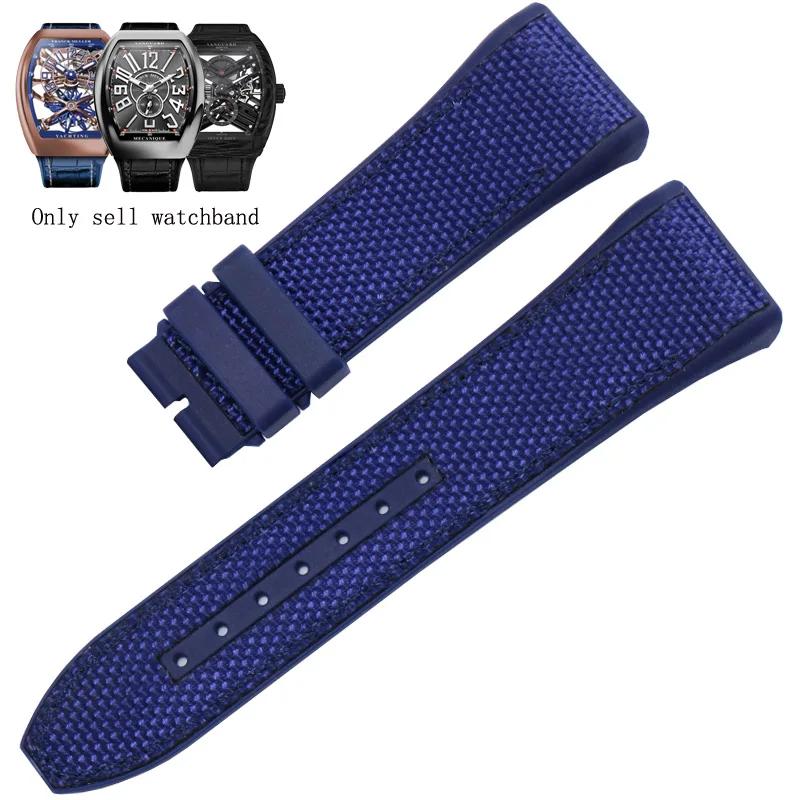 28 мм нейлоновый ремешок из натуральной кожи с силиконовым ремешком черного и синего цвета с раскладывающейся пряжкой для часов Franck Muller серии V45 28mm