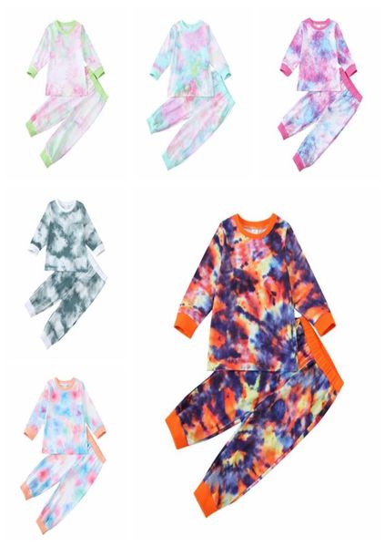 28 years toddler kids clothing sets junior girls boys tie dye long sleeve pajamas 2pcs pjs set children loungewear sleepwear home4391746, White